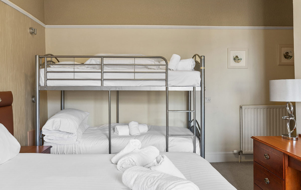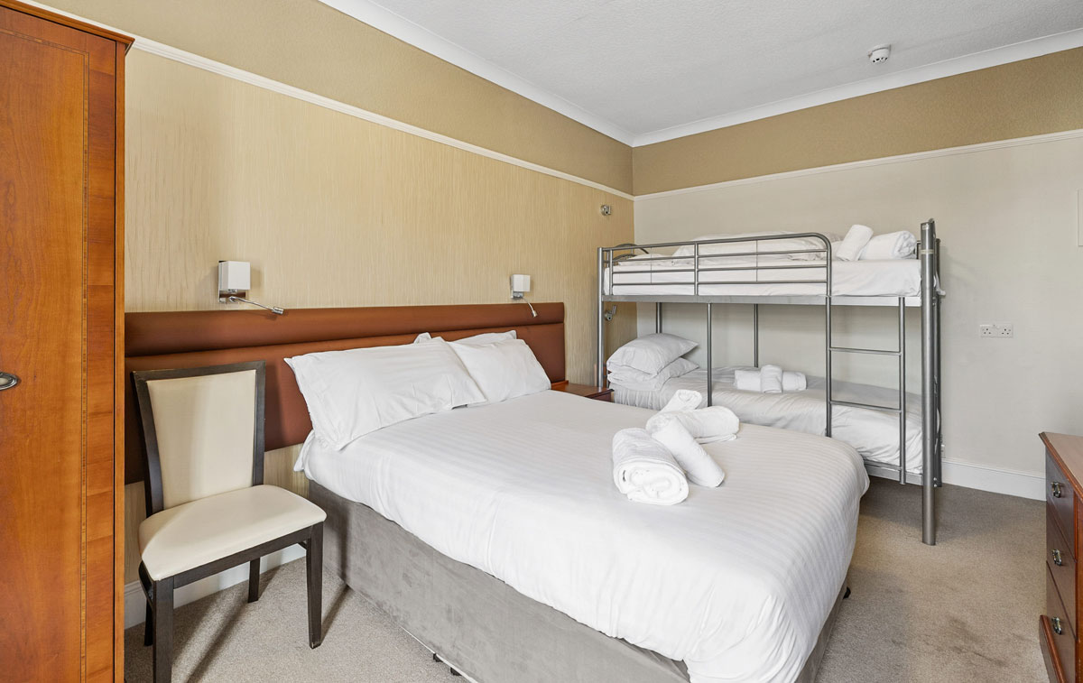 Spacious and adaptable, our Triple rooms provide comfortable accommodation for groups of three, consisting of a single bed and one large double bed. Whether you're a small family or friends exploring Plymouth together, these rooms ensure everyone enjoys a restful night's sleep.
